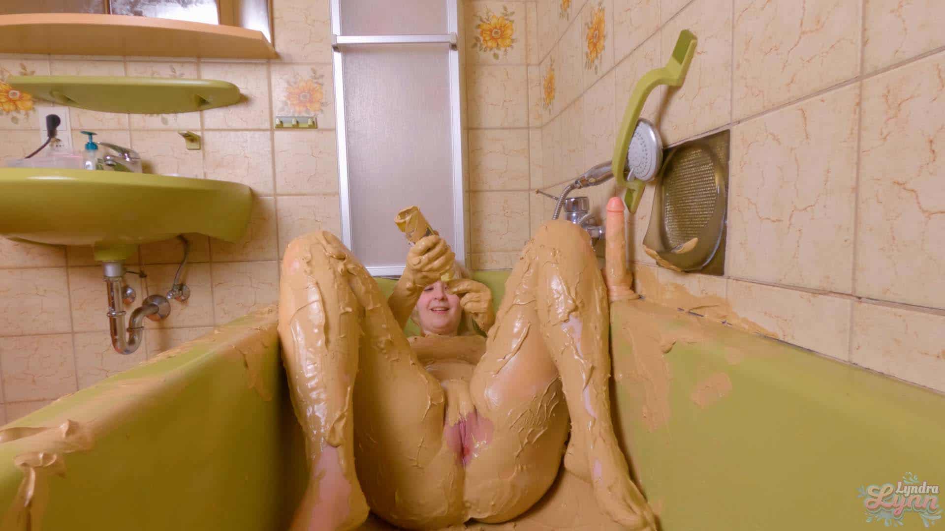 Jeder weiß, dass ich ein schmutziges Mädchen bin und viele verschiedene Substanzen mag 😉 Ich wollte wieder etwas mit Lehm machen, aber dieses Mal hatte ich zusätzlich noch meinen eigenen Lehm im Hintern. Ich beginne mich sinnlich mit dem cremigen Schlamm zu einzureiben, fast jeder Zentimeter meines Körpers wird damit bedeckt. Dann ziehe ich meinen Dildo heraus und beginne meine klatschnasse Muschi zu ficken. Ich wechsle in den Doggystyle, wo ich meine Pussy noch etwas ficke und dann drücke ich meinen eigenen Stange Lehm aus meinem Arsch, den ich mir ins Gesicht schmiere. Nachdem ich fertig bin, kannst du auch sehen, wie ich mich auch abwasche.
