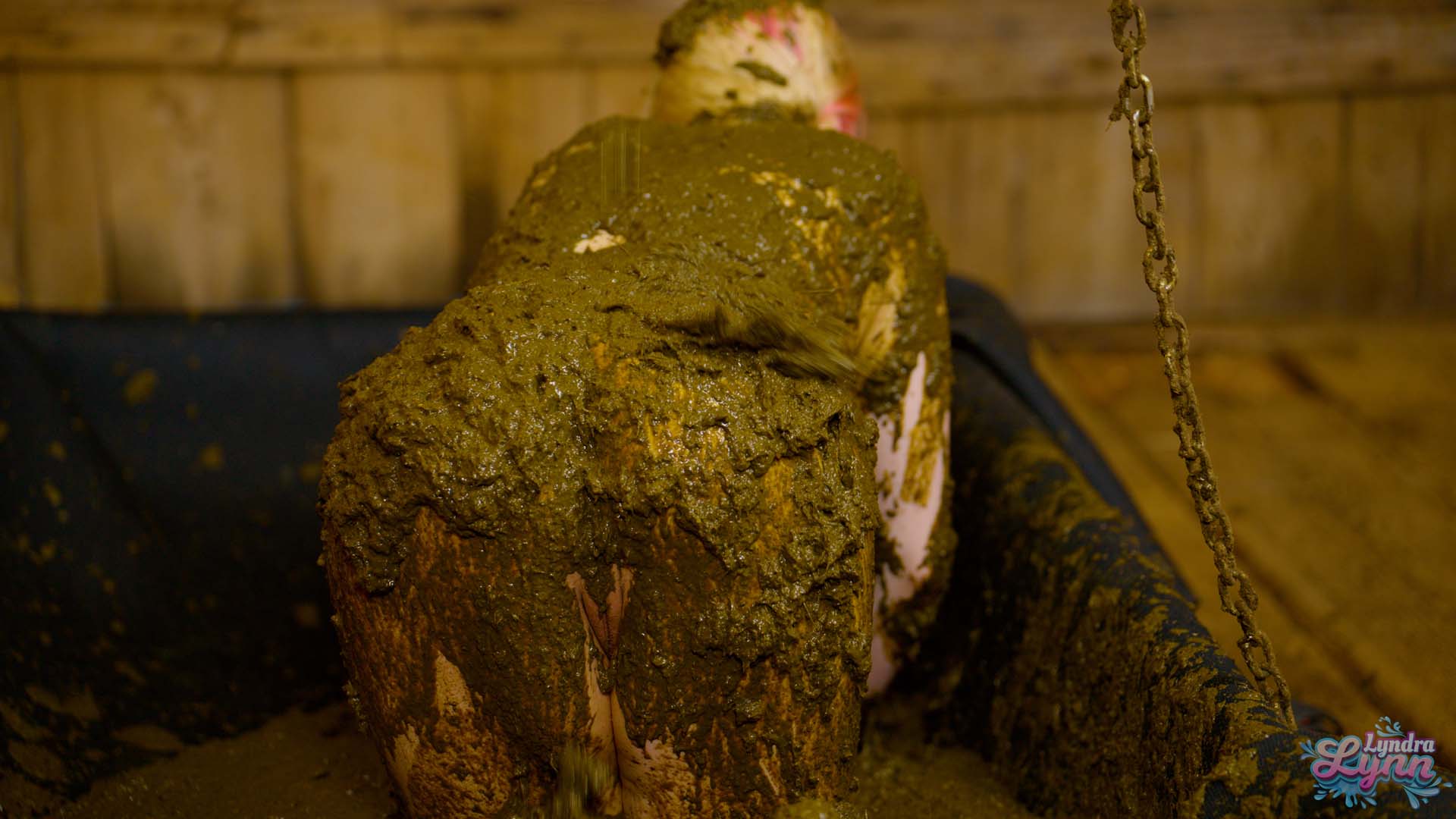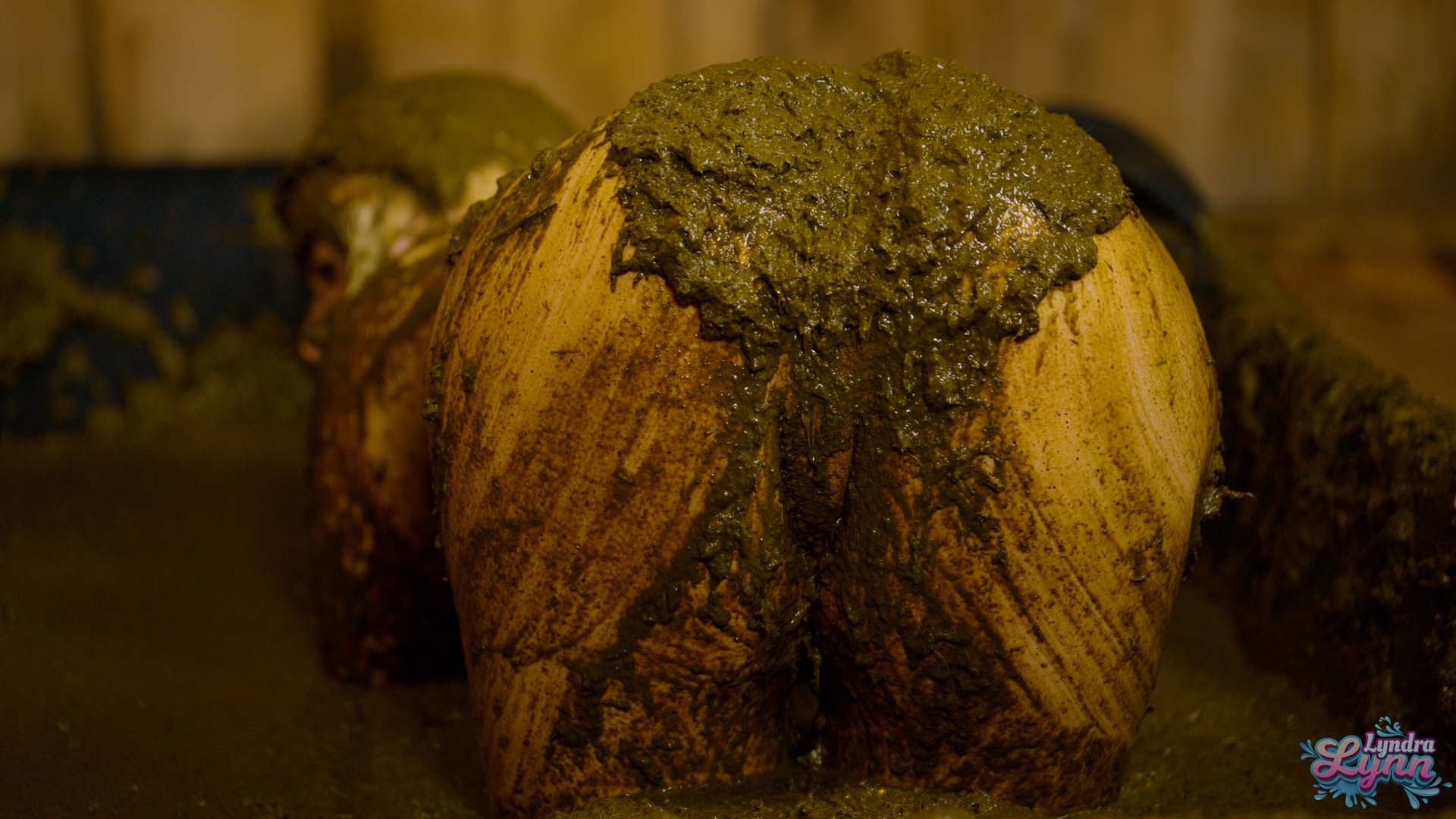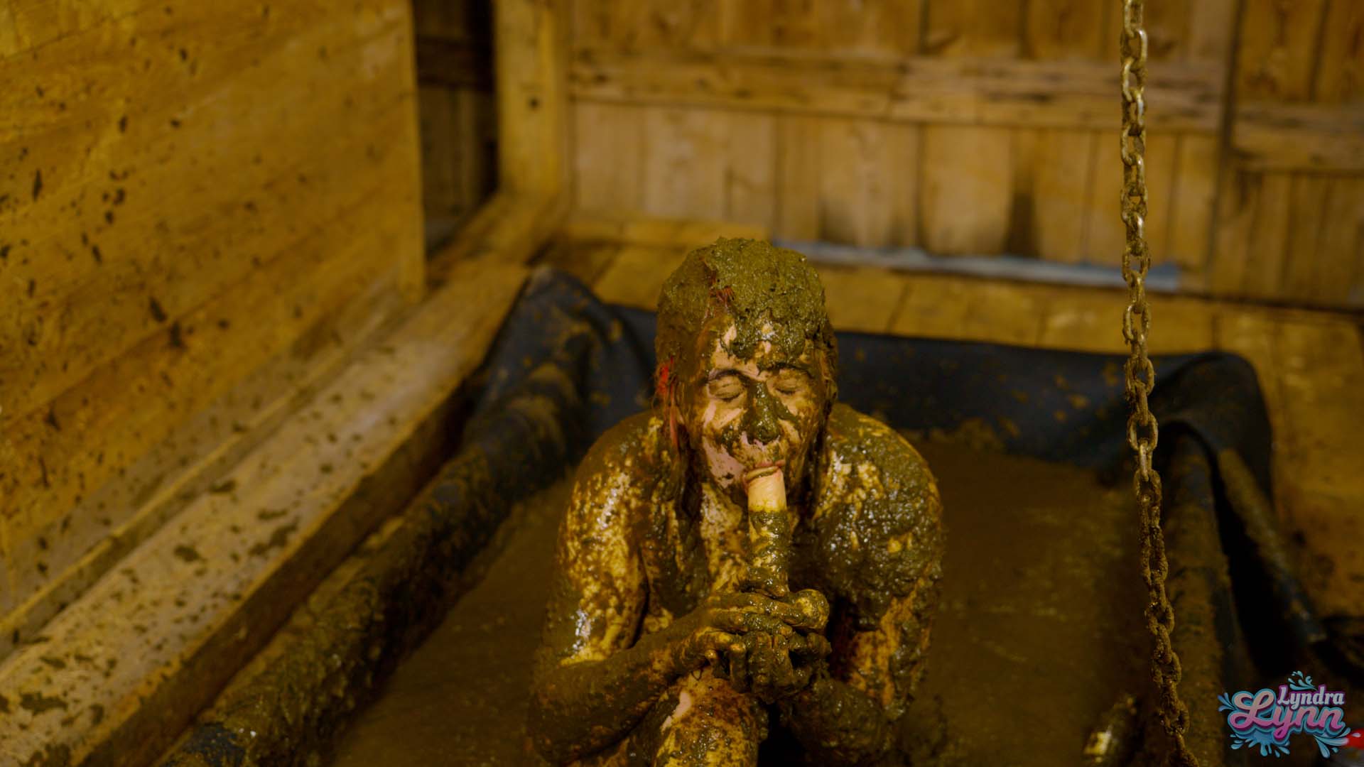 Jetzt will ich mehr, ich lege mich in das Becken, um ganz bedeckt zu werden. Während ich mich mit dem stinkenden Dreck bedecke, treffen die großen cremigen Stücke auf meine Muschi, was ein sehr erregendes Gefühl ist. Ich beginne zu masturbieren und spreize auch meine Muschi, damit der Kuhmist sie direkt trifft und meine Muschi sogar ein wenig ausfüllt. Ich masturbiere zu einem geilen Orgasmus, danach spiele ich noch ein bisschen im Mist herum und lutsche auch den mit Kuhmist bedeckten Dildo, während mein Gesicht von oben mit noch mehr Mist beschmiert wird.