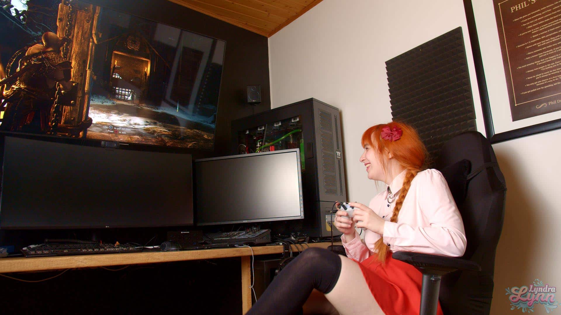 Ich konnte es kaum erwarten, von der Schule zurückzukommen, um God of War weiter zu spielen. Ich trage immer noch meine Schuluniform, während ich es spiele. Irgendwann wurde ich so geil, dass ich angefangen habe, mich selbst zu berühren. Das Rütteln des Controllers fühlte sich so schön an, dass ich ihn gegen meine feuchte Muschi drückte. Es fühlte sich so gut an, den vibrierenden Controller in meiner Muschi zu spüren, also habe ich angefangen, mich damit zu ficken, während ich meine heiße und warme Klitoris gerieben habe. Ich fingere auch meine enge Muschi, während ich meinen cremigen Muschisaft von dem Controller leckte, nur um ihn wieder hineinzuschieben, um mich zu einem schönen Orgasmus zu ficken.